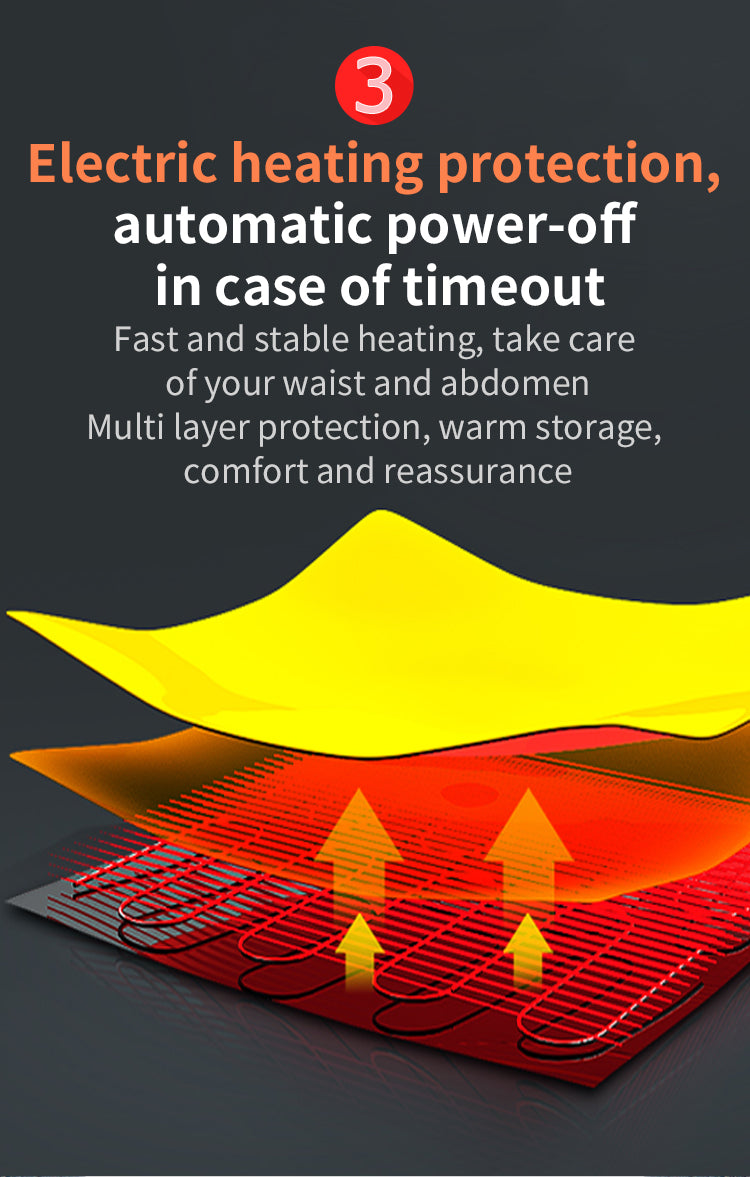 1.The waist electric heating pad is designed to provide heat therapy to relieve waist muscle tension, abdominal pain, menstrual pain and stomach discomfort.